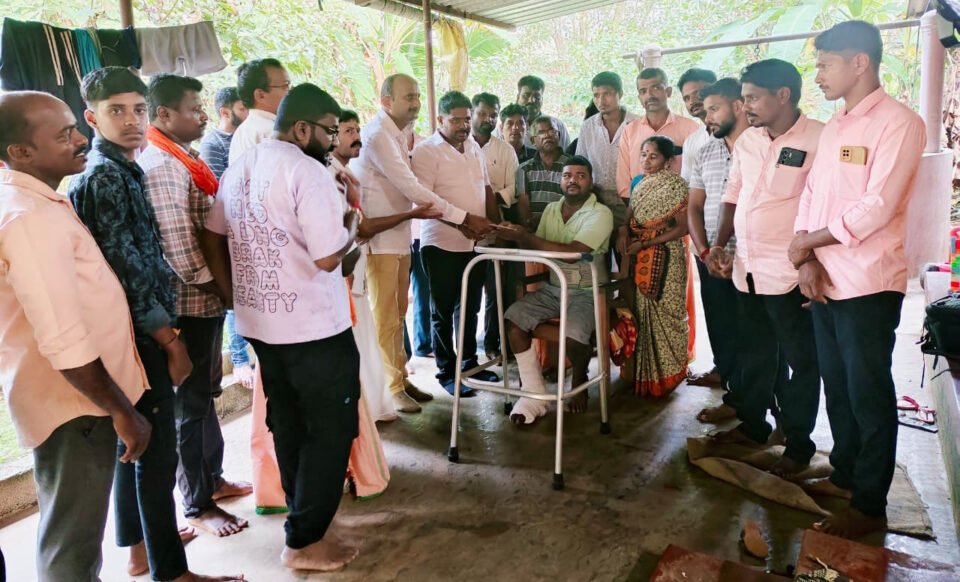 ಪರಸ್ಪರ ಸೇವಾ ಟ್ರಸ್ಟ್ (ರಿ)ಈದು -ನಾರಾವಿ ವತಿಯಿಂದ ಹಿಂದೂ ಸಂಘಟನೆಯ ಕಾರ್ಯಕರ್ತ ಸಂತೋಷ್ ಆಚಾರ್ಯ ಇವರು ಒಂದು ತಿಂಗಳ ಹಿಂದೆ ವೆಲ್ಡಿಂಗ್ ಕೆಲಸ ಮಾಡುತ್ತಿದ್ದಾಗ ಮನೆಯ ಮಾಡಿನಿಂದ ಕೆಳಗೆ ಬಿದ್ದು ಸೊಂಟ ಕಾಲುಗಳಿಗೆ ಗಂಭೀರ ಗಾಯವಾಗಿ ಮಂಗಳೂರಿನ ಎ.ಜೆ ಹಾಸ್ಪಿಟಲ್ ನಲ್ಲಿ ಒಂದು ತಿಂಗಳ ಕಾಲ ಚಿಕಿತ್ಸೆ ಪಡೆದು ಕೆಲವು ದಿನಗಳ ಹಿಂದೆ ಆಸ್ಪತ್ರೆಯಿಂದ ಡಿಸ್ಚಾರ್ಜ್ ಆಗಿ ಮನೆಯಲ್ಲಿ ವಿಶ್ರಾಂತಿ ಪಡೆಯುತ್ತಿದ್ದಾರೆ.