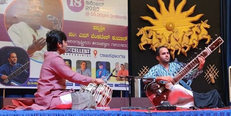 ಸಂಗೀತ ಲೋಕದ ಸಾಮ್ರಾಟ ಪದ್ಮಶ್ರೀ ಪಂ. ಎಂ.ವೆಂಕಟೇಶ್ ಕುಮಾರ್ ಹಿಂದೂಸ್ಥಾನಿ ಗಾಯನ, ಯುವ ಸಿತಾರ್ ವಾದಕ ಅಂಕುಶ ನಾಯಕ್ ಶಾಸ್ತ್ರೀಯ ಸಂಗೀತ ಎಕ್ಸಲೆಂಟ್ ನಲ್ಲಿ ಇಂದು ಗಾನ ಮಾಧುರ್ಯದ ಅನುರಣನ. ಜಾಗತಿಕ ಲೋಕದ ಹಿಂದೂಸ್ಥಾನಿ ಗಾಯಕ ವೆಂಕಟೇಶ್ ಕುಮಾರ್ ಗಾನ ಮಾಧುರ್ಯಕ್ಕೆ ಶಿಕ್ಷಣ ಪ್ರೇಮಿಗಳು ಮೈ ಮರೆತು ಮೆರೆದರು.