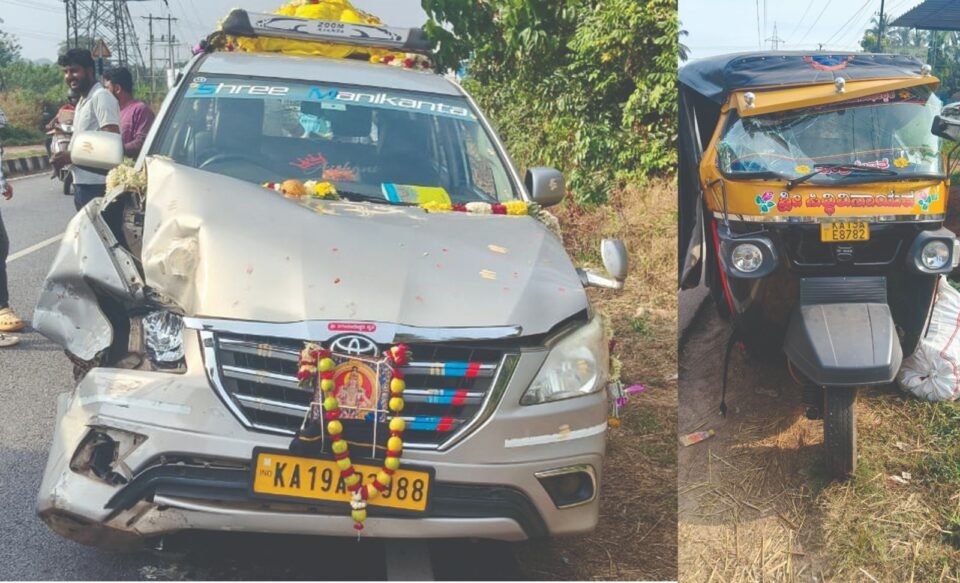 ಶಿವಮೊಗ್ಗದಿಂದ ಶಬರಿಮಲೆ ಯಾತ್ರೆಗೆ ಹೊರಟ್ಟಿದ್ದ ಕೆಎ19ಎಬಿ2988 ನಂಬ್ರದ ಇನೋವಾ ಕಾರು ಕಾರ್ಕಳದಿಂದ ಇರ್ವತ್ತೂರು ಕಡೆಗೆ ಚಲಿಸುತ್ತಿದ್ದ ರಿಕ್ಷಾಕ್ಕೆ ಹಿಂದಿನಿಂದ ಡಿಕ್ಕಿ ಹೊಡೆದಿದೆ.