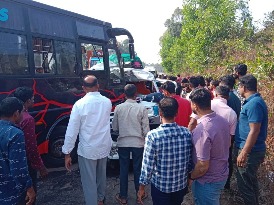 ಕಾರ್ಕಳ ಮಿಯ್ಯಾರು ರಾಷ್ಟೀಯ ಹೆದ್ದಾರಿಯಲ್ಲಿ ಬಸ್ ಹಾಗೂ ಕ್ರೂಸರ್ ಮಧ್ಯೆ ಭೀಕರ ಅಪಘಾತ ನಡೆದು ಹಲವು ಮಂದಿ ಮೃತ ಪಟ್ಟಿದ್ದಾರೆ ಎಂದು ತಿಳಿದು ಬಂದಿದೆ.