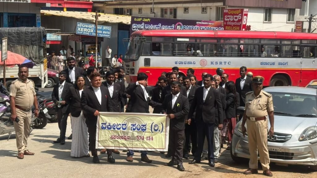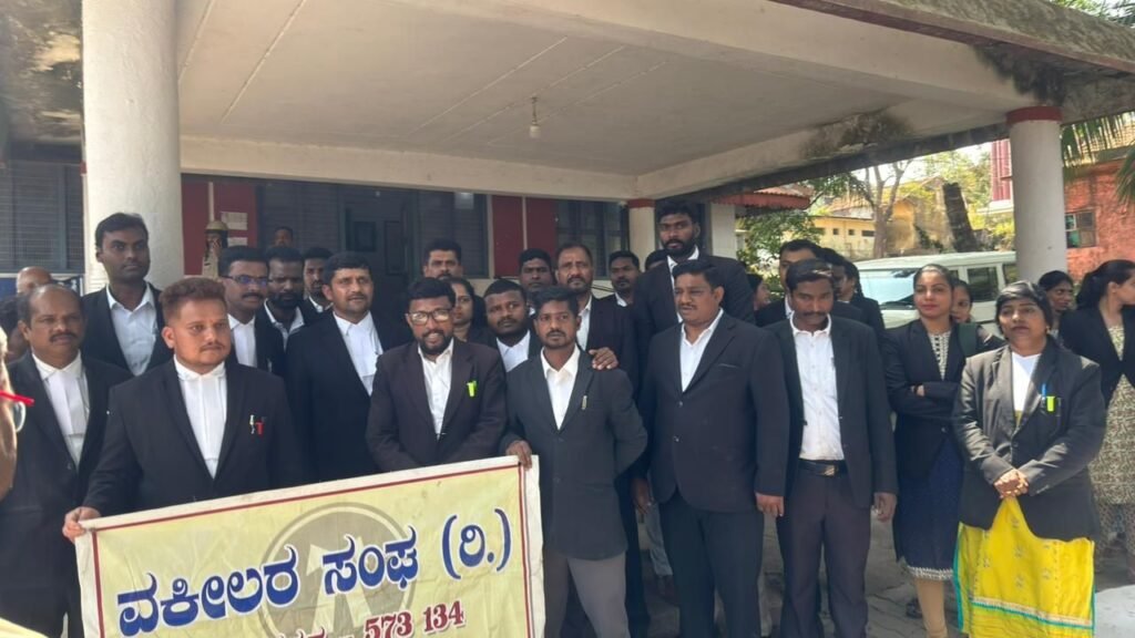 🌹ವಕೀಲರ ವಿರುದ್ಧ ಜಾತಿ ನಿಂದನೆ ಕೇಸ್ – ವಕೀಲರಿಂದ ಪ್ರತಿಭಟನೆ