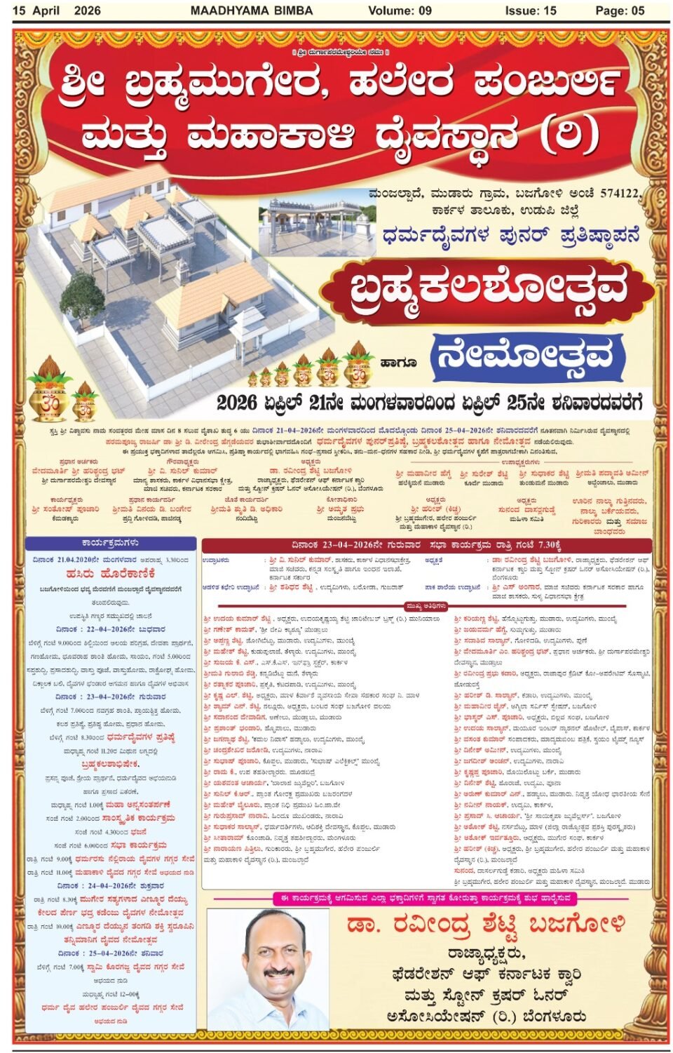 ಏಪ್ರಿಲ್ 24 ಶುಕ್ರವಾರ ರಾತ್ರಿ 8.30ಕ್ಕೆ ಮುಗೇರ ಸತ್ಯಗಳಾದ ಎಣ್ಮೂರ ದೆಯುಕೆಲದ ಪೆರ್ಣ ಭದ್ರ ಕಡೆಂಜು ದೈವಗಳ ನೇಮೋತ್ಸವ.
